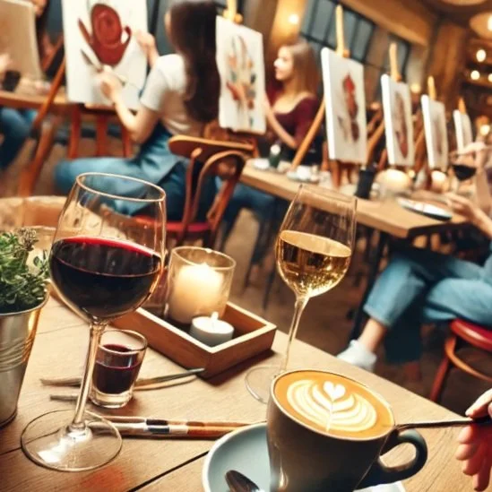 Discover the joy of painting in a warm, welcoming space designed for self-expression and connection. Whether you're starting your day with a rich espresso or unwinding with a glass of wine, our signature sessions offer the perfect creative escape. Led by vibrant hosts, these guided experiences require no prior experience—just an open mind and a great drink!